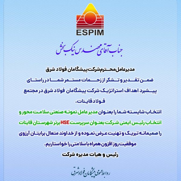 داوطلب گرامی پذیرفته شده در آزمون شرکت پیشگامان فولاد شرق